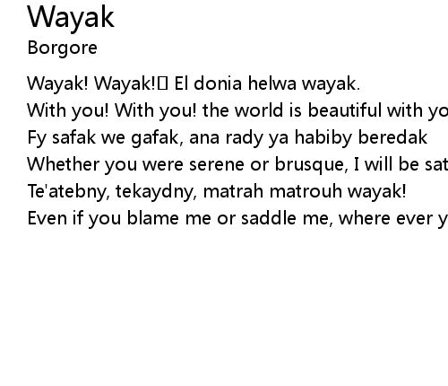 | Wayak! Wayak! El donia helwa wayak. | |
