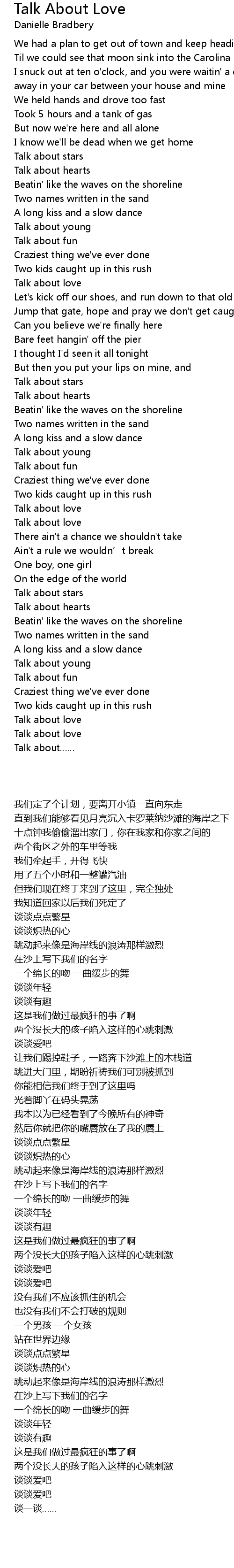 | Song | Talk About Love |