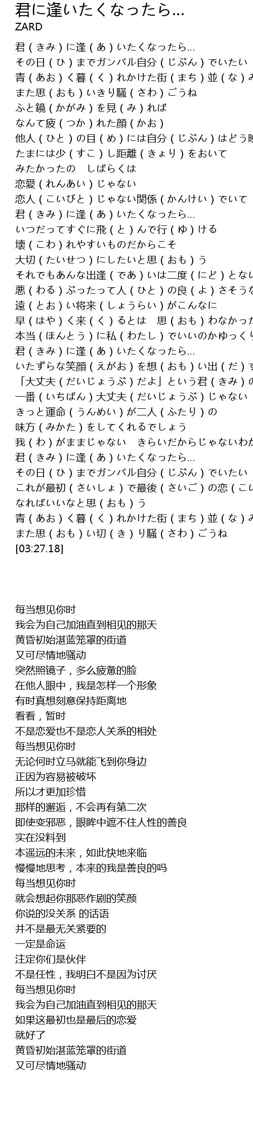 | [03:03.37] | 君(きみ)に逢(あ)いたくなったら… |