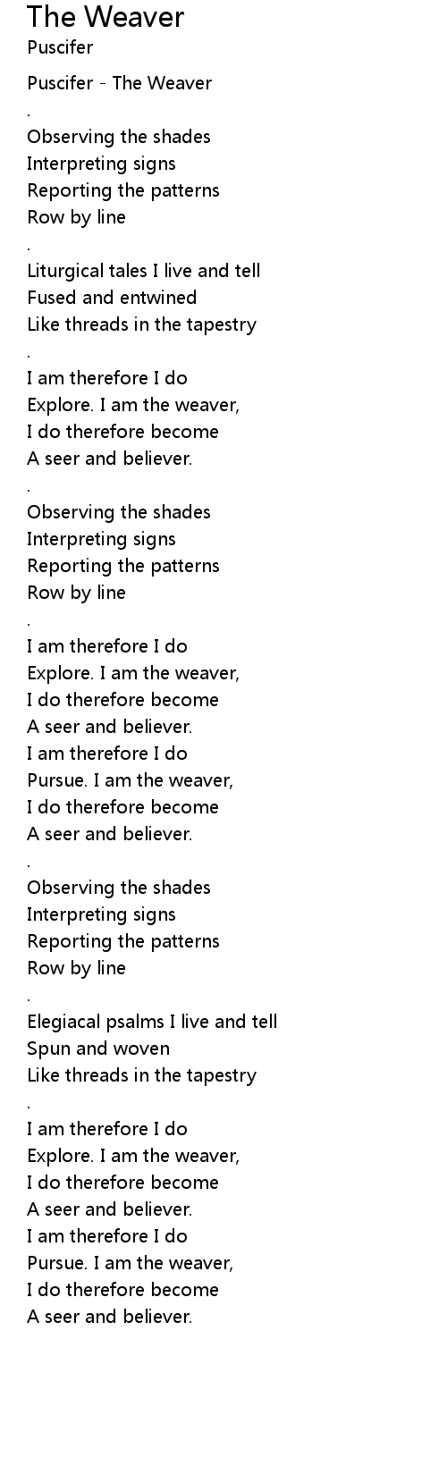 Pursue. I am the weaver, |