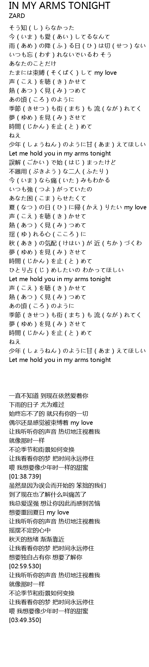 | [02:59.530] | Let me hold you in my arms tonight |