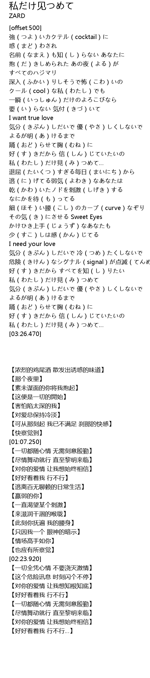 | [02:47.240] | 私(わたし)だけ見(み)つめて |