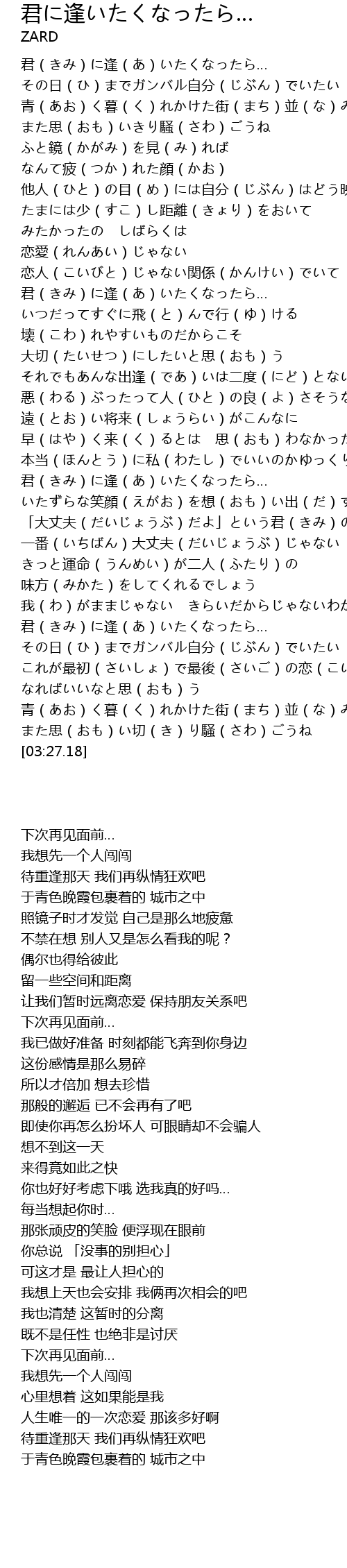 | [03:03.37] | 君(きみ)に逢(あ)いたくなったら… |