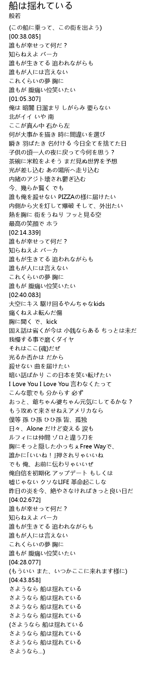 | [03:36.436] | ルフィには仲間 ゾロと違う刀を |