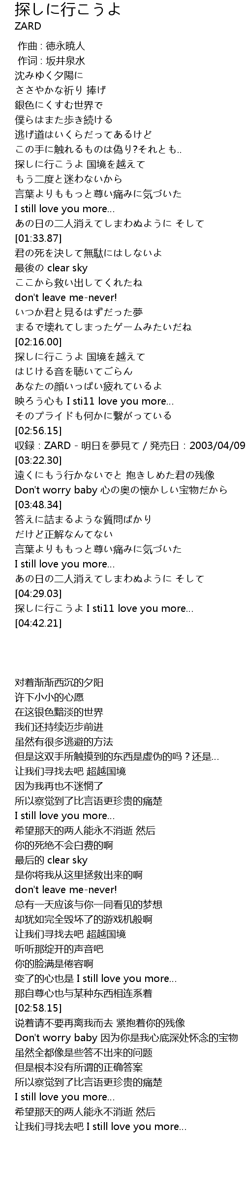 | [04:31.77] | 探しに行こうよ I sti11 love you more… |