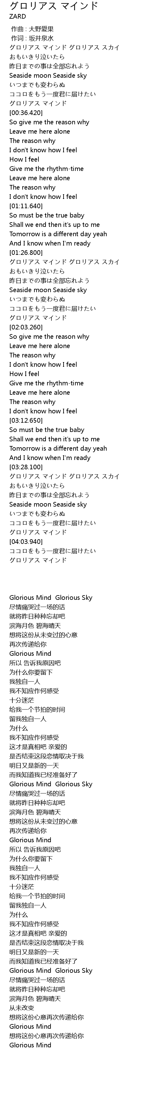 | [00:01.670] | グロリアス マインド グロリアス スカイ |