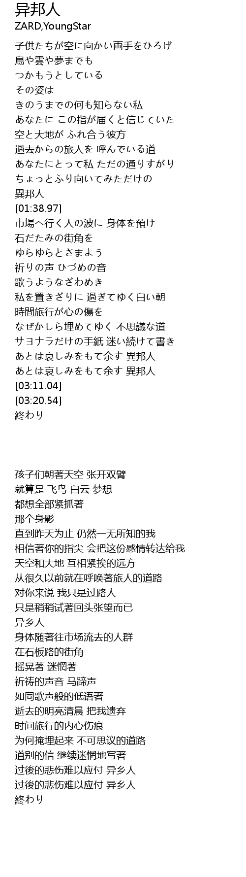 | [02:51.63] | あとは哀しみをもて余す 異邦人 |