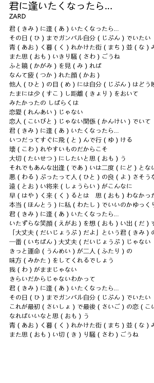 | [00:08.56] | 君(きみ)に逢(あ)いたくなったら… |