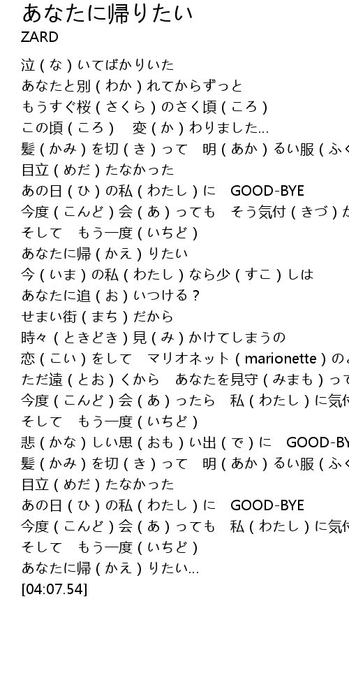 | [04:06.54] | あなたに帰(かえ)りたい… |