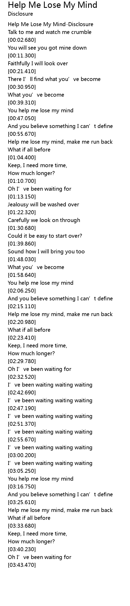 | [0-1:52.760] | Help Me Lose My Mind-Disclosure |