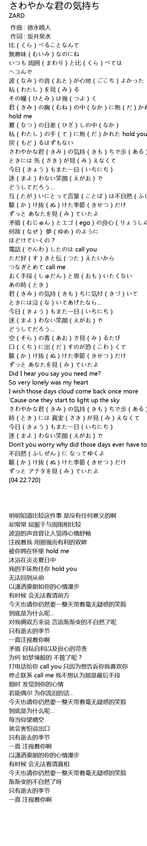 | [02:34.710] | あの時(とき) 君(きみ)の気持(きも)ちに気付(きづ)いて |