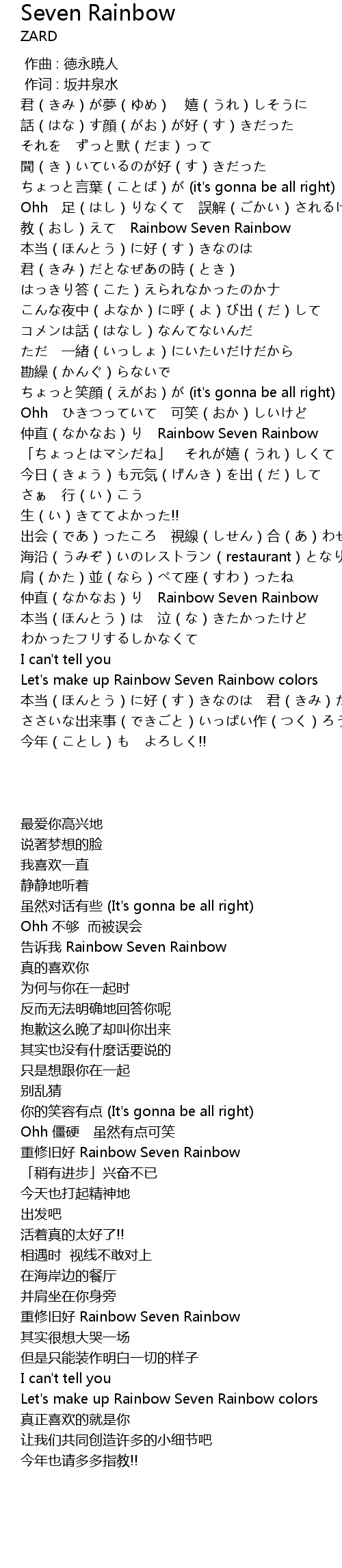 | [02:58.58] | zhòng zhí Rainbow Seven Rainbow |