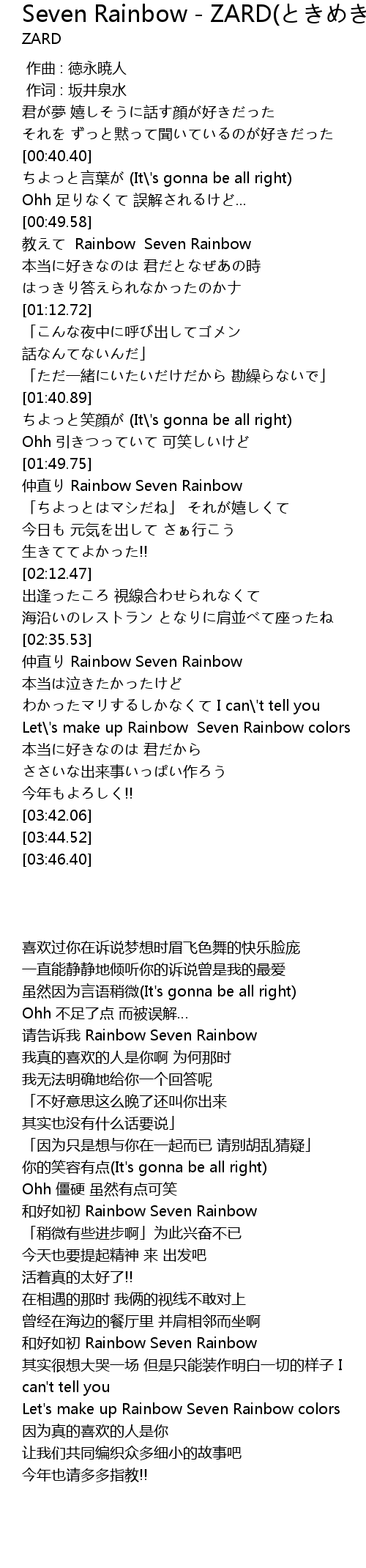 | [02:58.54] | zhòng zhí Rainbow Seven Rainbow |