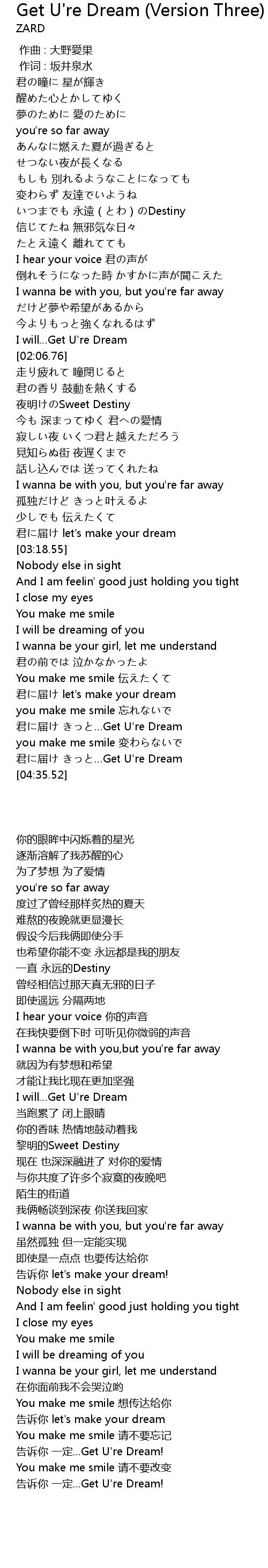 | [04:18.42] | jūn jiè Get U' re Dream |
