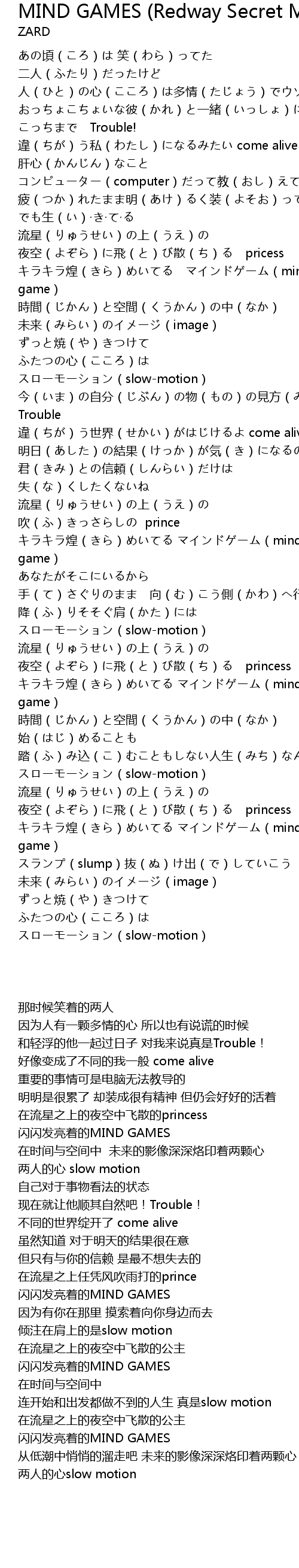 | [02:34.89] | キラキラ煌(きら)めいてる マインドゲーム(mind game) |