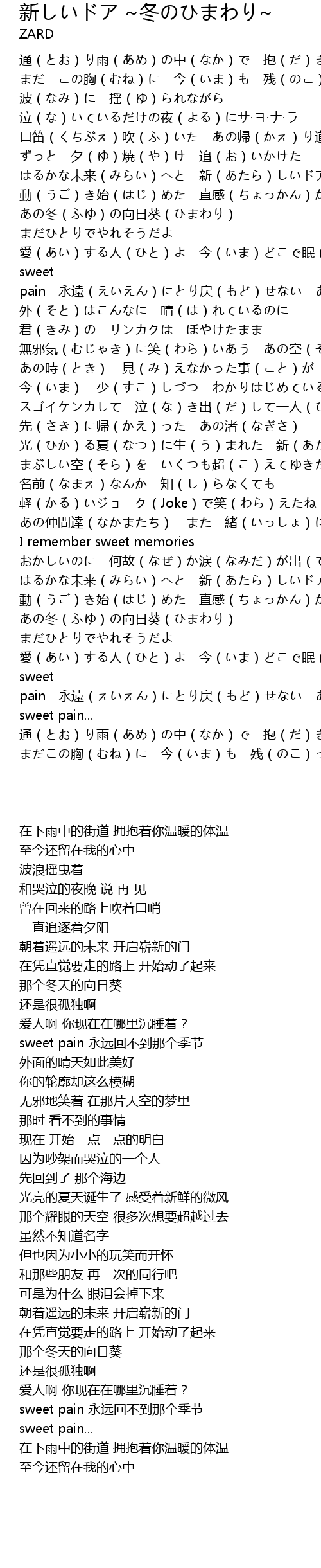 | [04:02.42] | はるかな未来(みらい)へと 新(あたら)しいドア(Door)を開(あ)け |