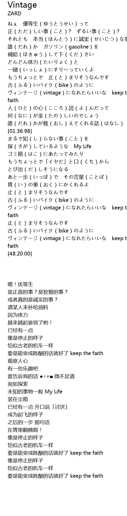 | [02:39.33] | ヴィンテージ(vintage)になれたらいいな keep the faith |