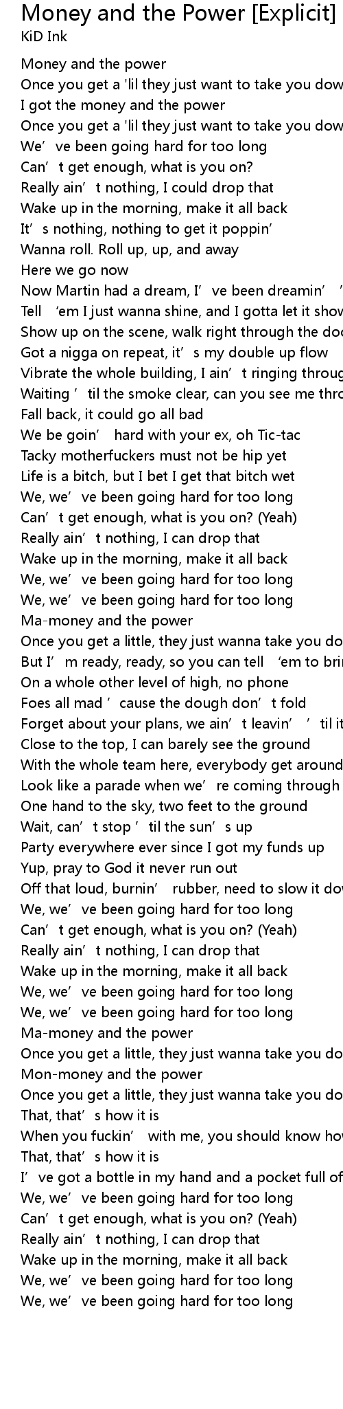 | Song | Money and the Power [Explicit] |