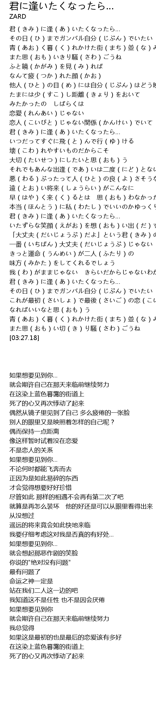 | [03:03.37] | 君(きみ)に逢(あ)いたくなったら… |
