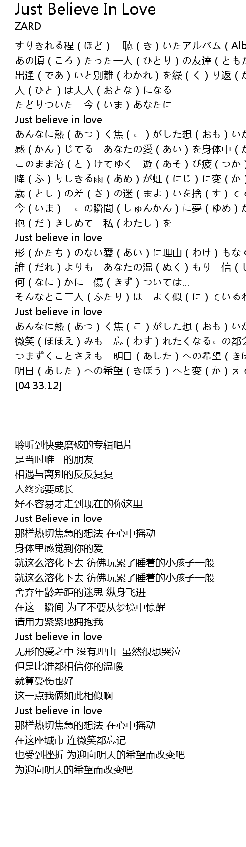 | [02:35.10] | Just believe in love |