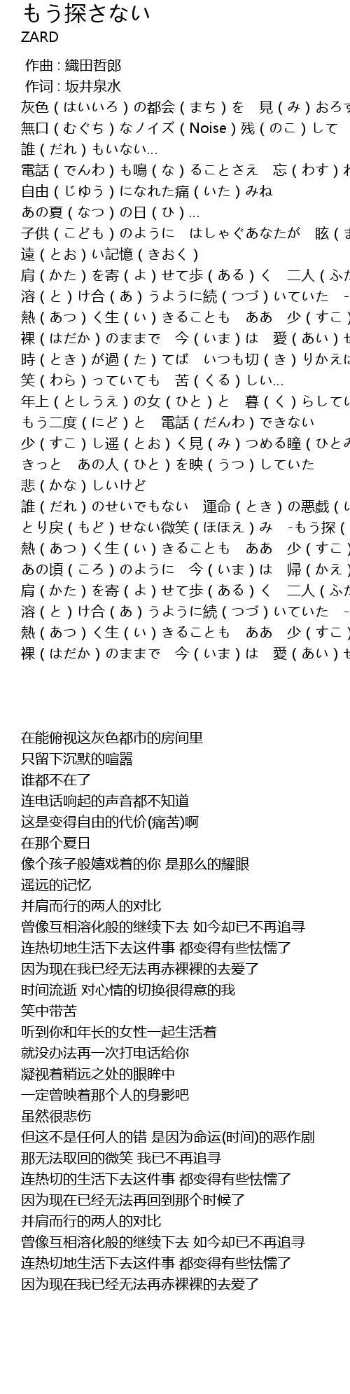 | [01:15.93] | 溶(と)け合(あ)うように続(つづ)いていた -もう探(さが)さない- |