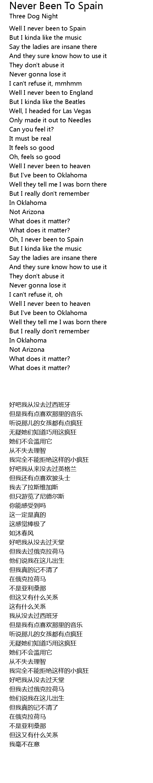 Oh, I never been to Spain |