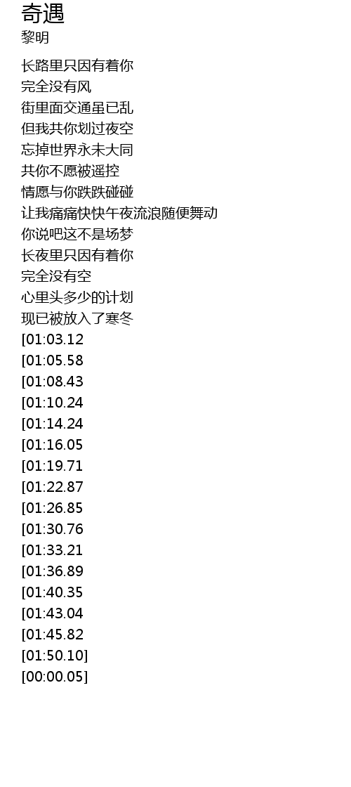 | [02:52.81][01:43.04] | 这晚又可算是奇遇 |