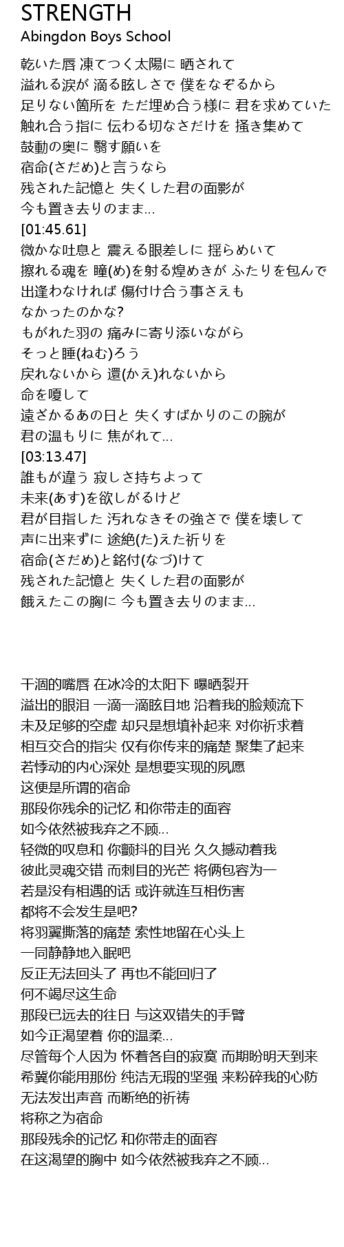 | [03:25.62] | 君が目指した 汚れなきその強さで 僕を壊して |