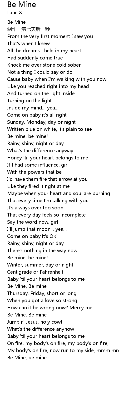 | [02:43.58] | Be Mine, Be mine |