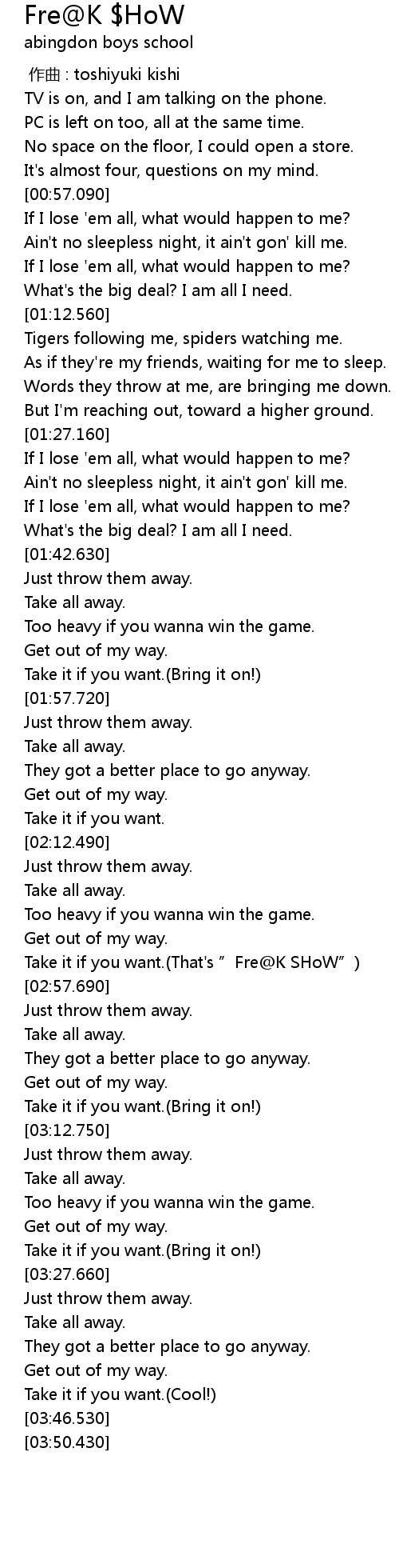 | [02:52.340] | Take it if you want. That' s " Fre K SHoW" |