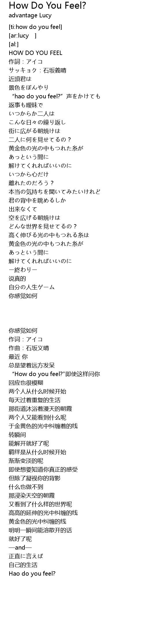| [00:31.83] | “hao do you feel?”声をかけても |