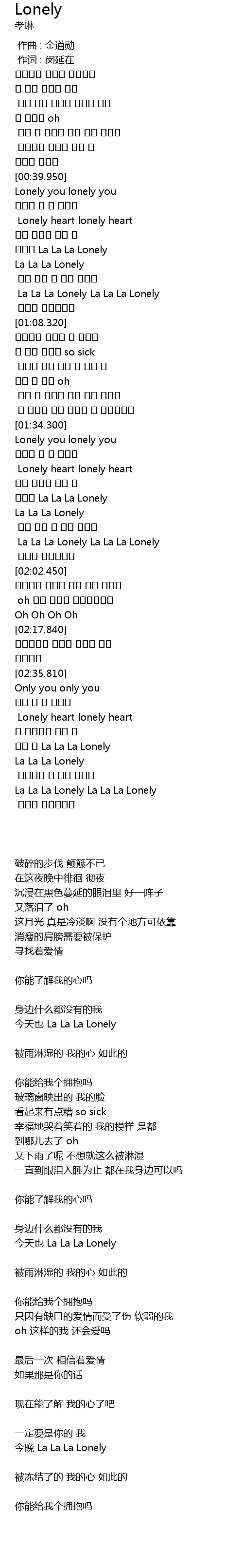 | [03:00.530] | La La La Lonely La La La Lonely |