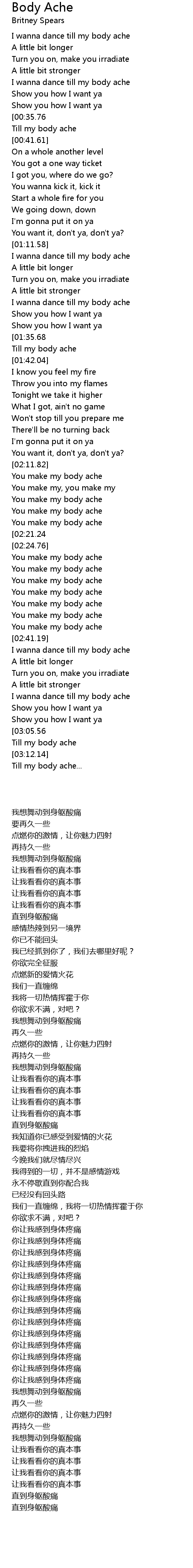 You make my body ache |