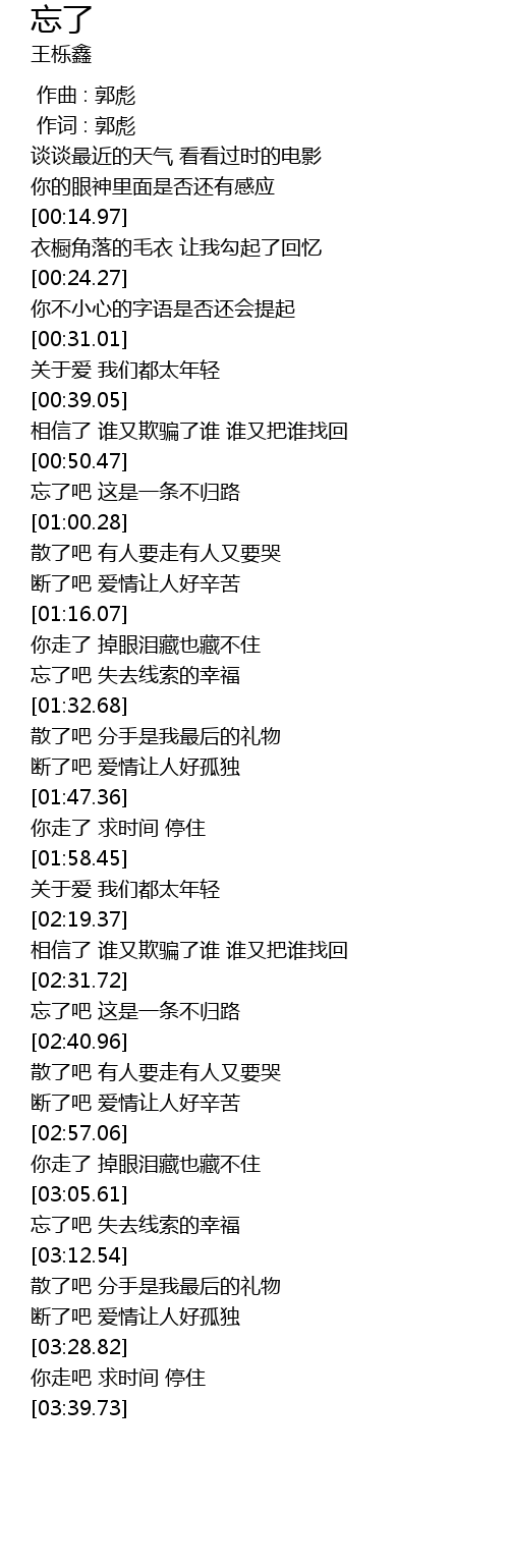 | [02:34.85] | 忘了吧 这是一条不归路 |