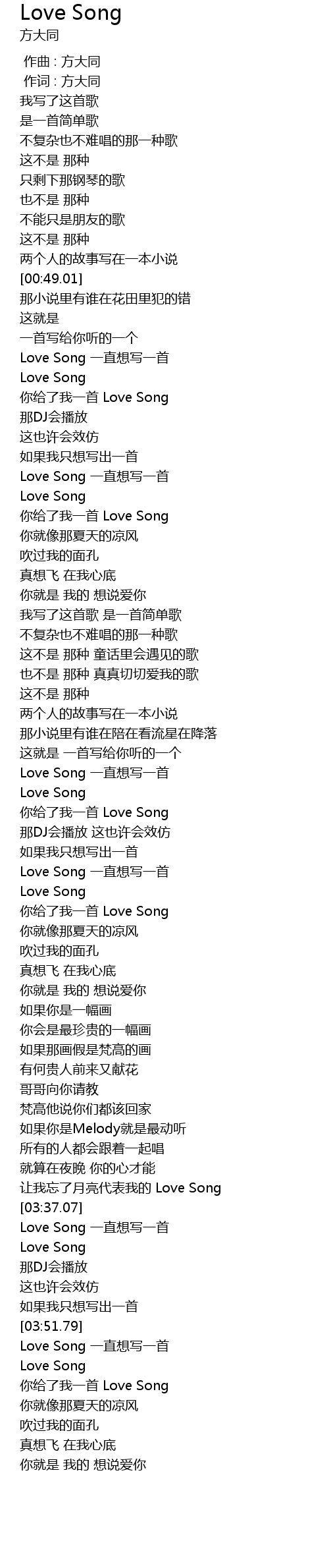| [03:38.79] | Love Song 一直想写一首 |