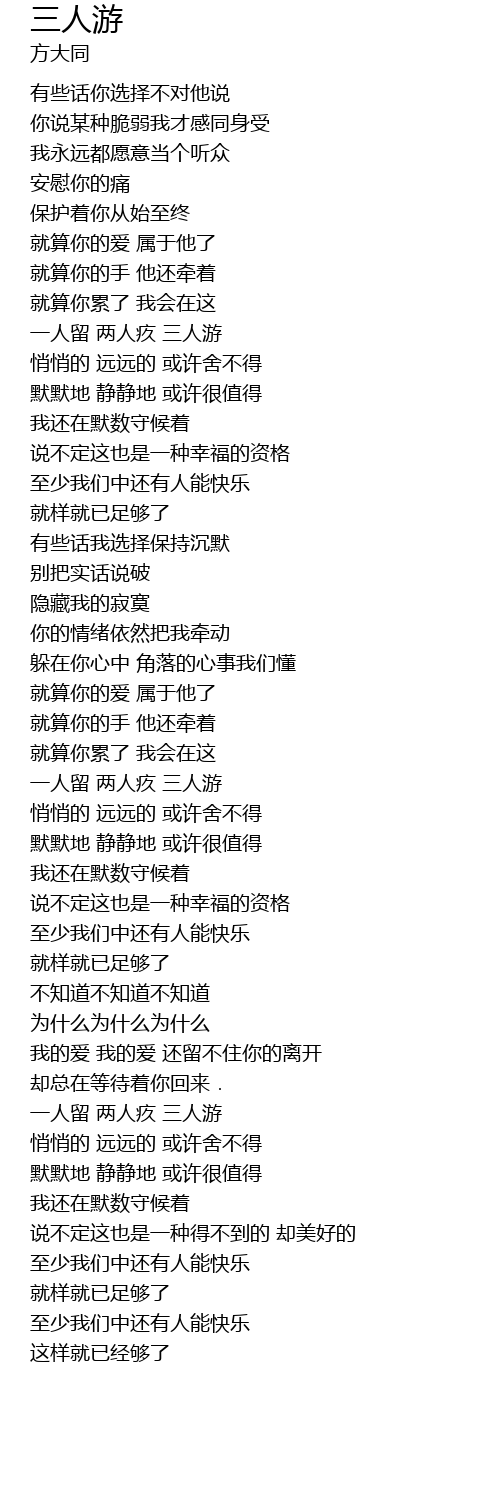 | [03:02.400] | 一人留 两人疚 三人游 |