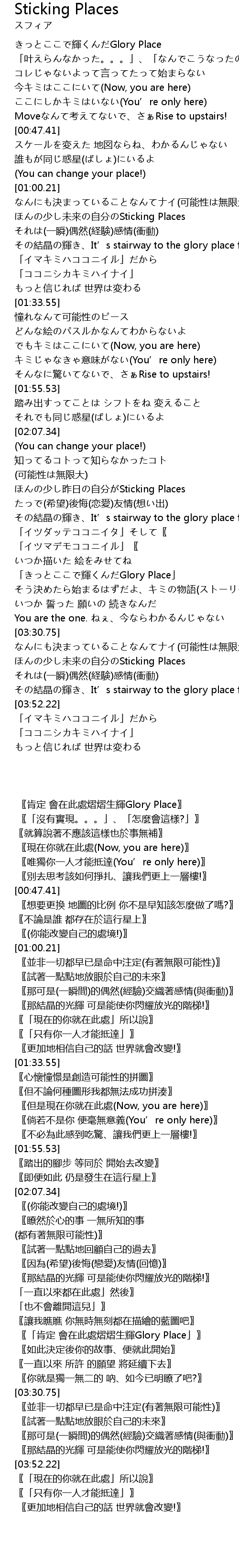 | [03:37.25] | ほんの少し未来の自分のSticking Places |