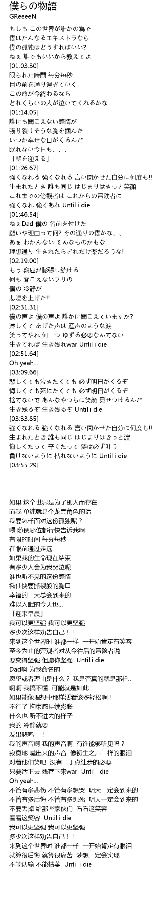 | [03:50.23] | 負けないように 枯れないように Until i die |