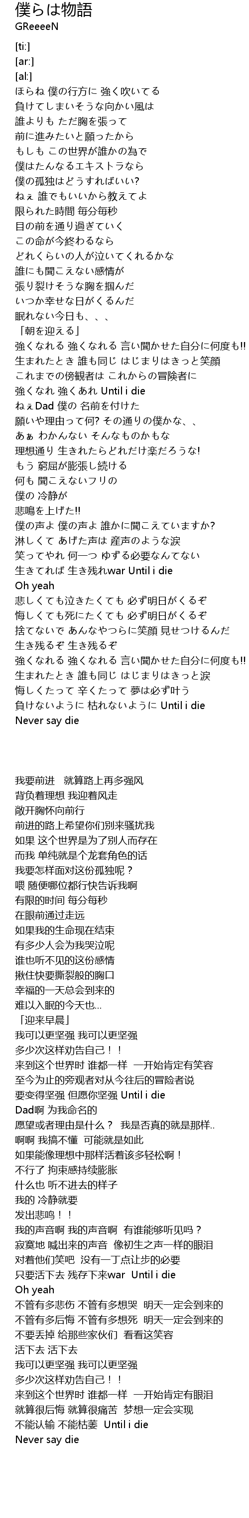 | [03:49.81] | 負けないように 枯れないように Until i die |