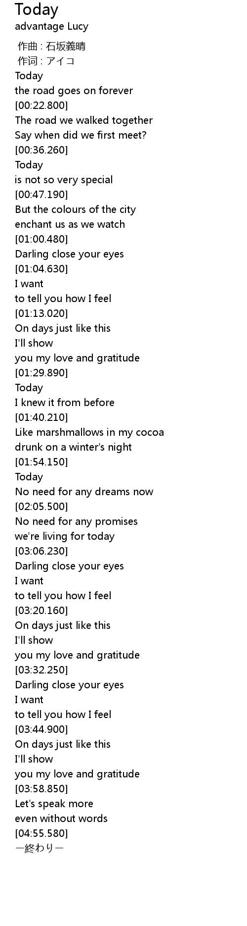 | [00:00.00] | 作曲 : 石坂義晴 |