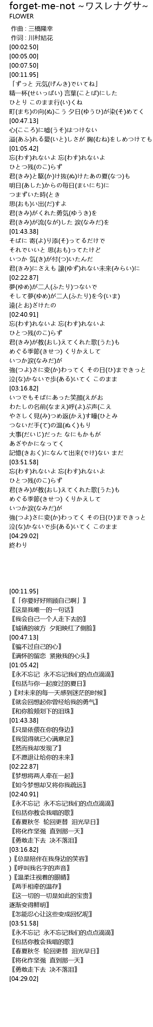 | [02:41.69] | 忘(わす)れないよ 忘(わす)れないよ ひとつ残(のこ)らず |