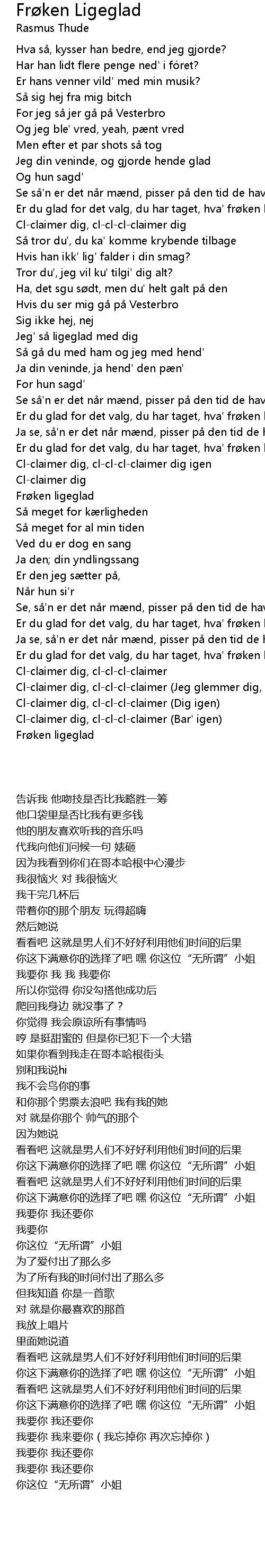 | Song | Frøken Ligeglad |