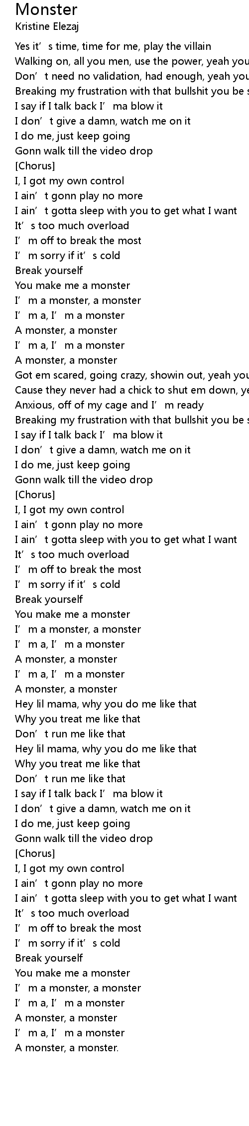 | I' m a, I' m a monster | |