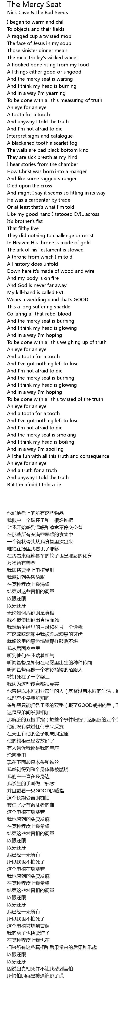 And the mercy seat is burning |