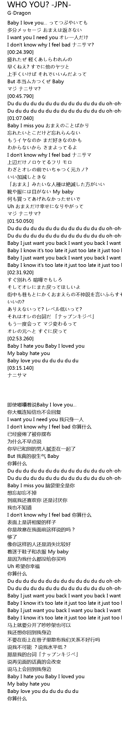 | [03:10.420] | Baby love you du du du du du |