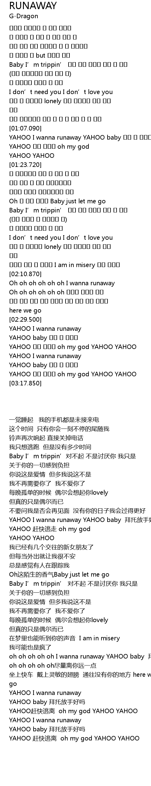 | [01:07.820] | YAHOO I wanna runaway YAHOO baby 제발 좀 놔줄래 |