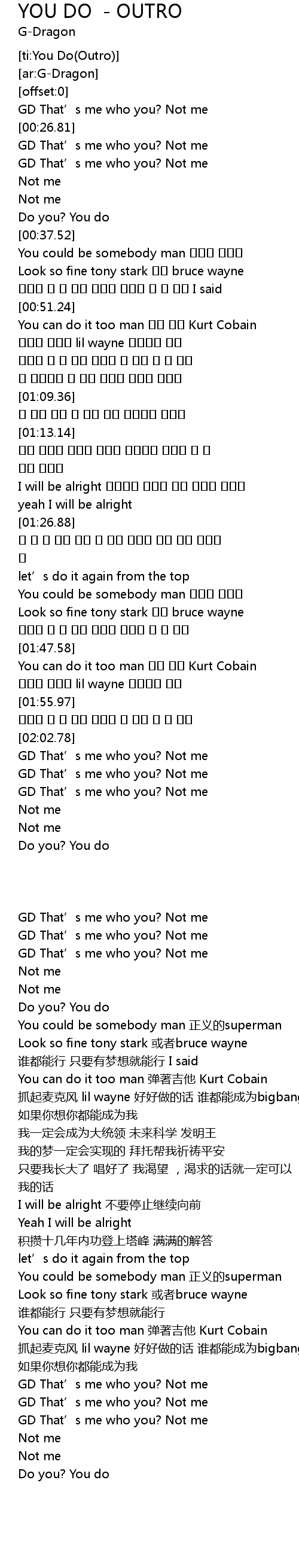 | [00:55.73] | 마이크 잡으면 lil wayne 잘나가면 빅뱅 |
