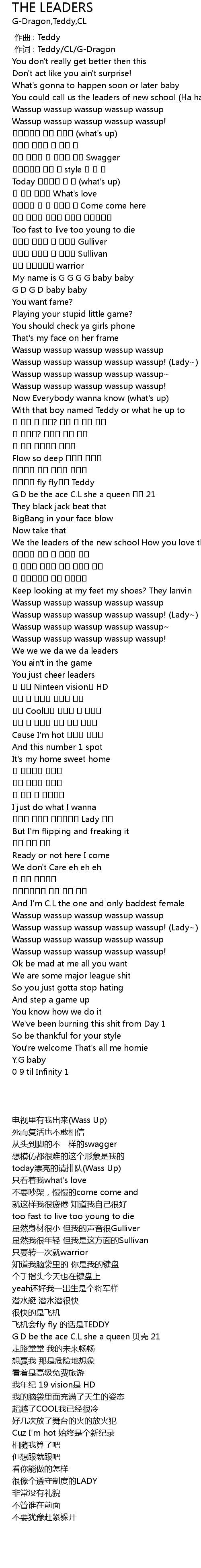 | [00:01.00] | 作词 : Teddy/CL/G-Dragon |