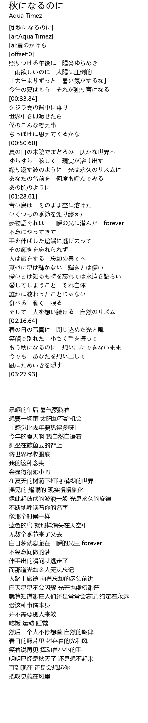 | [03:07.02] | もう秋になるのに 想い出にできないまま |