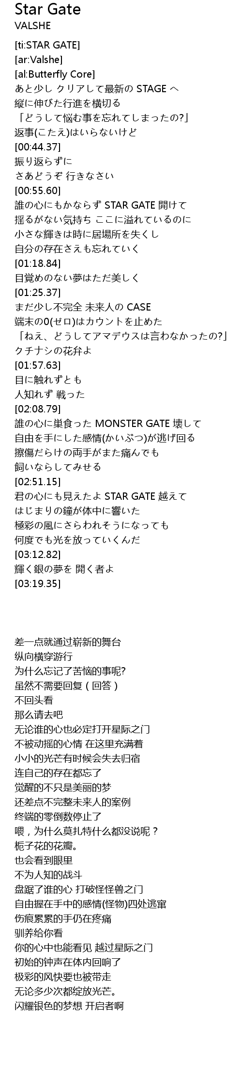| [02:51.32] | jūn xīn jiàn STAR GATE yuè |